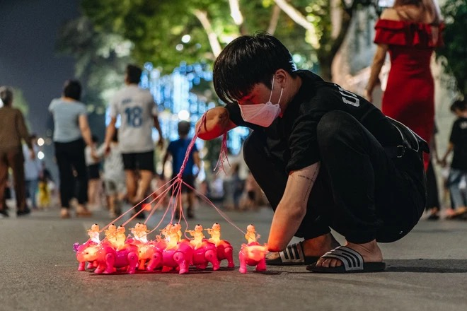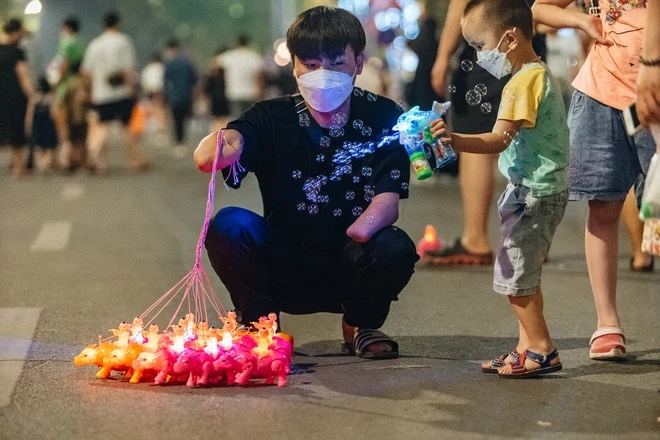 Phúc thường xuyên bán đồ chơi trên nhiều tuyến phố đi bộ, khiến nhiều người cảm động
