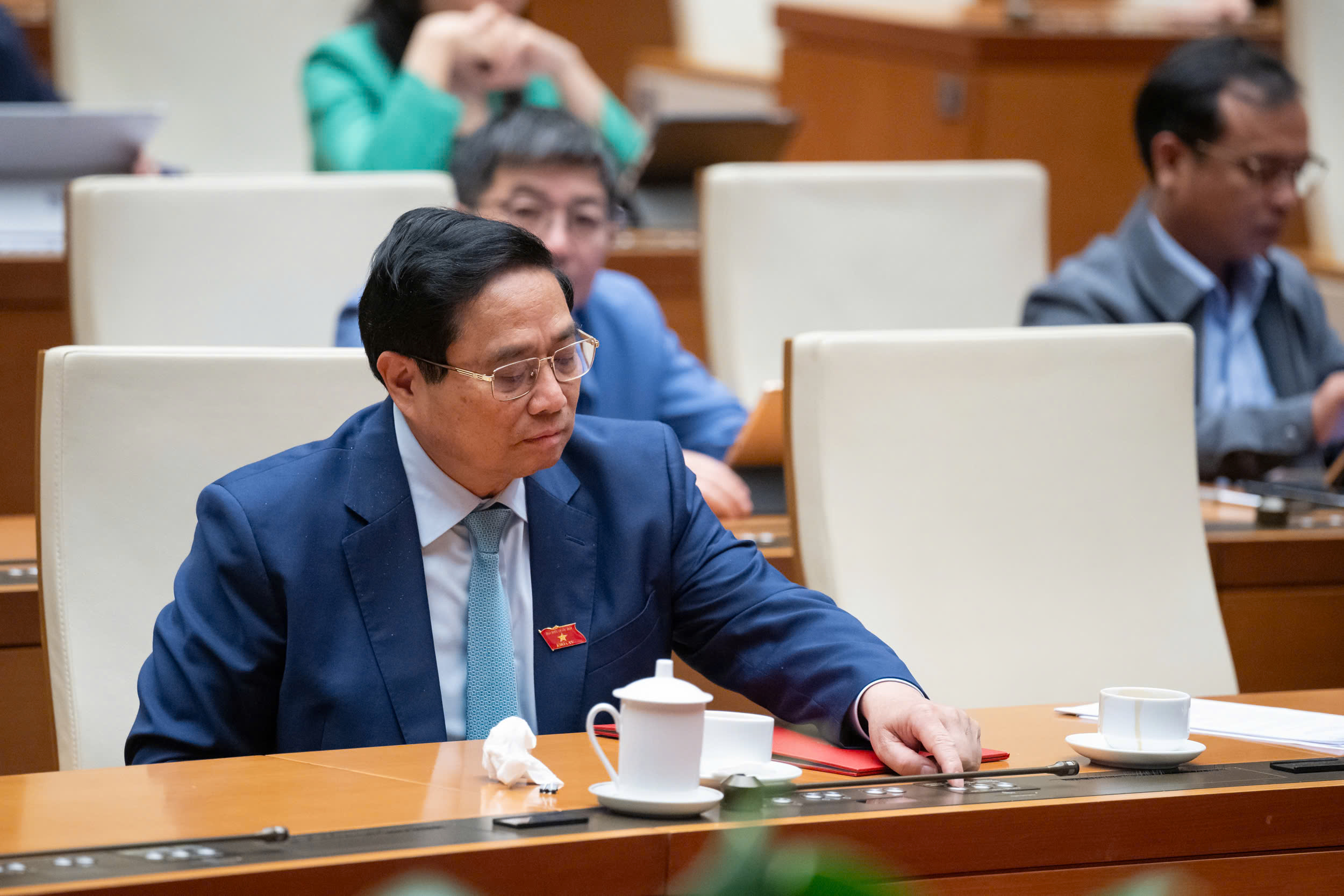 Thủ tướng Chính phủ Phạm Minh Chính bấm bút thông qua Nghị quyết (Ảnh: Cổng thông tin điện tử Quốc hội)