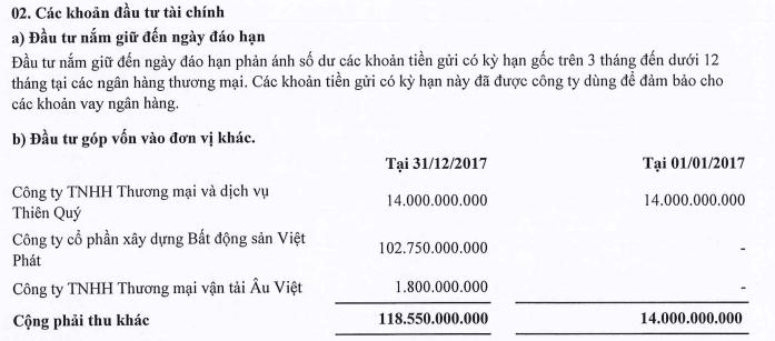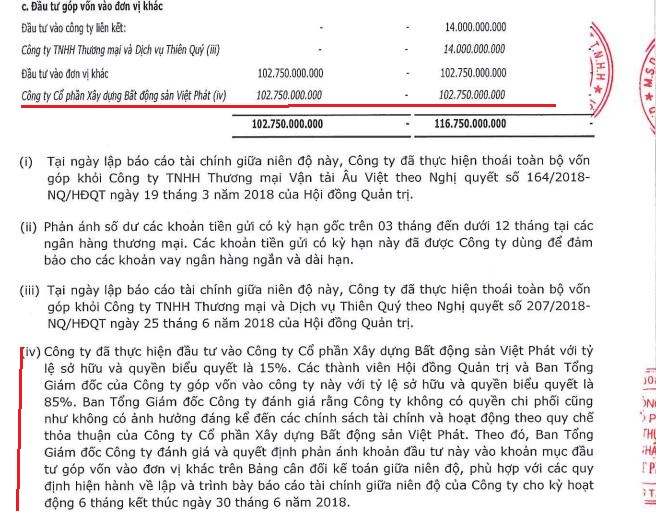 Trong BCTC bán niên 2018 của VPG có một khoản đầu tư công ty Cổ phần Xây dựng Bất động sản Việt Phát (Cty BĐS Việt Phát) với số tiền là 102 tỷ đồng. Vậy nguồn tiền đó như thế nào?