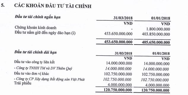 Và trong BCTC quý 1/2018 cũng không thể hiện số tiền 30 tỷ có được góp vốn