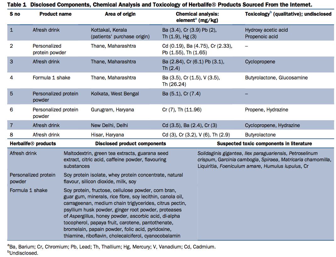 | Rất nhiều kim loại nặng được tìm thấy cũng như độc tố không được công bố trong các sản phẩm của Herbalife do nhóm nghiên cứu này phát hiện từ các sản phẩm của Herbalife |