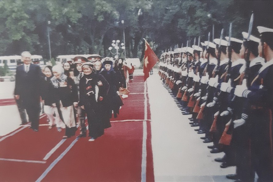 Bà Bình kể tiếp: “Được BCT đồng ý, ngày 1/12/1994 Đảng và Nhà nước long trọng tổ chức phong tặng danh hiệu BMVNAH đợt 1 tại Hội trường Ba Đình lịch sử và ngày 29 cùng tháng đó lần đầu tiên trong lịch sử Cách mạng Việt Nam hàng trăm BMVNAH ở tuổi ngoài 70 đã cùng duyệt đoàn quân danh dự với người đứng đầu nhà nước Việt Nam trong khuôn viên Phủ Chủ tịch. Kể từ đợt 1 trong 6 năm liền Đảng và Nhà nước ta đã phong 6 đợt danh hiệu cao quý cho 42.798 Bà mẹ. Kể từ đó phong trào đền ơn đáp nghĩa nhận phụng dưỡng suốt đời các BMVNAH và xây dựng Quỹ đền ơn đáp nghĩa, toàn dân chăm sóc gia đình thương binh liệt sĩ, Người có công với cách mạng vừa sôi nổi, vừa rộng khắp trong tất cả các cơ quan, đoàn thể, các tổ chức xã hội, các đơn vị lực lượng vũ trang, các doanh nghiệp nhà nước và tư nhân đã trở thành nếp sống mang đậm tính nhân văn và truyền thống văn hóa Uống nước nhớ nguồn của các tầng lớp nhân dân trong cả nước. Điều ấy đã thực sự làm ấm lòng cho rất nhiều người đang sống và cả những người đã khuất”.