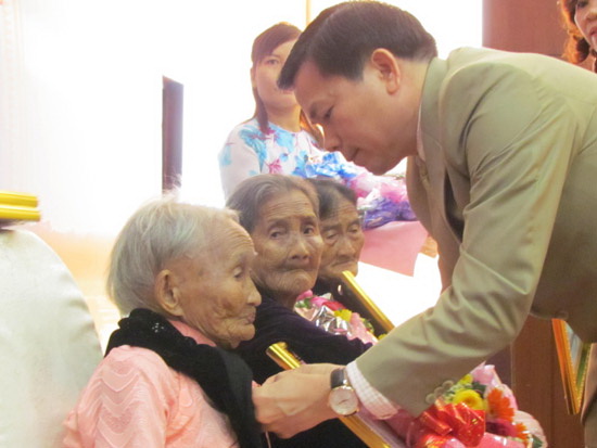 | Phó Bí thư Tỉnh ủy Quảng Ngãi Trần Văn Minh trao danh hiệu cho các Mẹ |