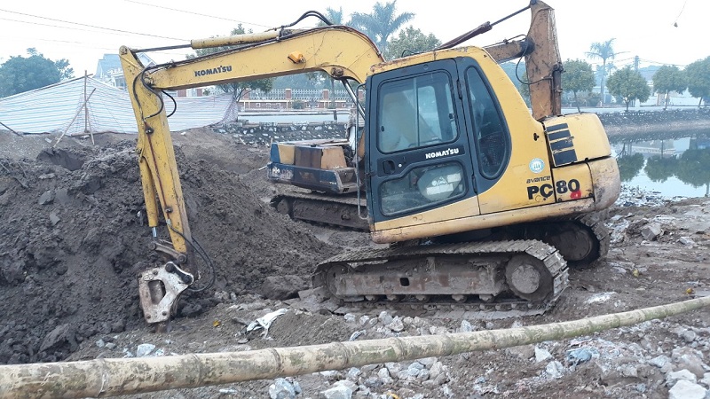 Tranh thủ mùa hanh khô, Công ty TNHH Tuyến Ngọc đã tập trung nguồn lực, máy móc, phương tiện vận tải... để thi công. Tính đến ngày 19/12/2019 phần khối lượng đất đào ước tính đạt 4.500m3, dùng cọc tre khay gia cố móng chính khoảng 30.000m, xây móng bằng đá hộc khoảng 287m3, và xây kè mái cao công trình khoảng 450m3...