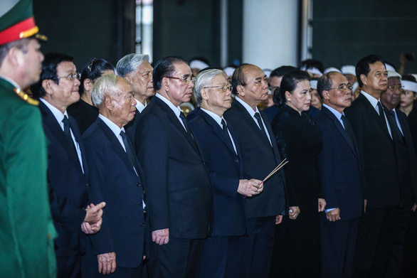Tổng bí thư, Chủ tịch nước Nguyễn Phú Trọng dẫn đầu đoàn Ban chấp hành TƯ Đảng vào lễ viếng. Tiếp theo đó là đoàn đại biểu Chính phủ do Thủ tướng Chính phủ Nguyễn Xuân Phúc dẫn đầu vào viếng.