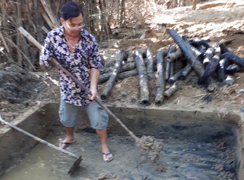 | Gốc tre được ông Chánh ngâm bùn non chống mối mọt (Ảnh: NVCC) |