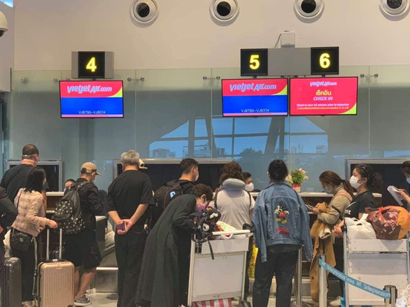 166 khách Trung Quốc đeo khẩu trang lúc làm thủ tục tại sân bay Đà Nẵng để trở về Vũ Hán - Ảnh: V.B