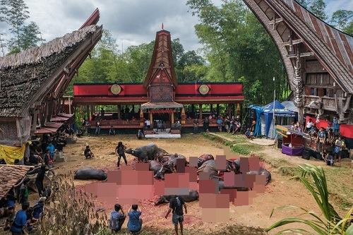 Theo National Geographic, tộc người Toraja sống tại thị trấn Rantepeo thuộc đảo Sulawesi (Indonesia) tin rằng, con người không thực sự ra đi cho tới khi người ta giết trâu trong lễ tang của họ để làm phương tiện đi lại trong thế giới bên kia. Cho đến khi lễ tang diễn ra, thi thể của người chết vẫn được để trong nhà trong nhiều tuần, nhiều tháng, thậm chí nhiều năm liền và được chăm sóc giống như người sống.