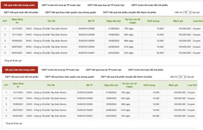 Một số lô trái phiếu do Sovico và đơn vị thành viên trong hệ sinh thái phát hành.