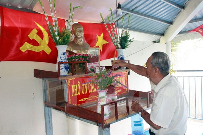 Ông Sơn cho biết, sau khi địa phương biết nơi đây có nhà thờ Bác Hồ, nhân kỷ niệm 42 năm Giải phóng miền Nam, thống nhất đất nước khoảng 60 người gồm cán bộ chính quyền địa phương, cán bộ hưu trí và đoàn viên thanh niên tổ chức đoàn đến thắp hương, rồi kể chuyện về Bác Hồ…