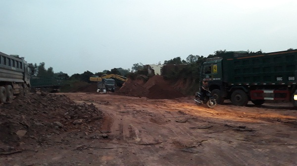 “Mục sở thị” tại hiện trường, phóng viên thấy cả một đại công trường khai thác đất tấp lập, 3 máy xúc hoạt động liên tục hết công suất, toàn xe ô tô 4 chân hổ vồ ra vào tấp nập ăn đất, đi theo đoàn xe phóng viên thấy những xe đất này đa phần di chuyển về xuôi theo hướng Bắc Ninh....