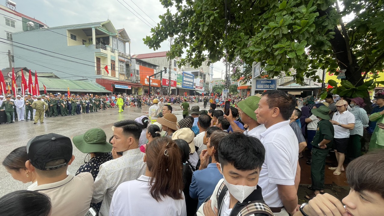 Người dân xếp hàng 2 bên đường chờ đợi đoàn diễu binh, diễu hành