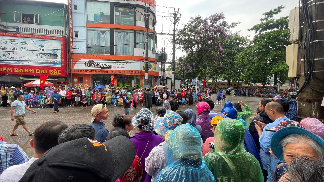 Từ sáng sớm, hàng vạn người dân và du khách đã chờ đợi trên các tuyến đường đoàn diễu binh, diễu hành sẽ đi qua trong lễ kỷ niệm 70 năm chiến thắng Điện Biên Phủ, được tổ chức sáng nay 7/5, tại TP Điện Biên Phủ, tỉnh Điện Biên. Khoảng 6h30, một cơn mưa nặng hạt bất ngờ đổ xuống TP.Điện Biên Phủ, nhưng tất cả những người có mặt vẫn kiên trì chờ đợi buổi lễ.