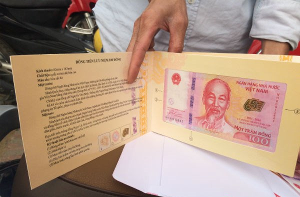 Theo đó, tiền lưu niệm 100 đồng bán 20.000 đồng/tờ (loại tờ rời) và 25.000 đồng/tờ (loại tờ Foder - được bọc trong phong bao, kèm chú thích song ngữ Việt - Anh).