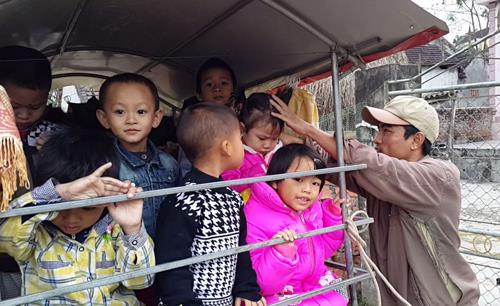 "Tài xế" Ngọc mỗi ngày hai chuyến đưa đón các cháu nhỏ tới trường. Ảnh: Hải Bình