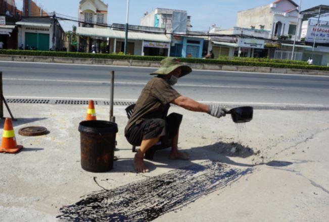 Năm 2018, thấy sức khỏe yếu, không còn đi bán vé số được nữa, ông Ba nghỉ hẳn. Từ đó tháng 30 ngày ông miệt mài đi vá đường. Mồ hôi nhễ nhại, đôi chân trần đặt trên nền nhựa mới giữa cái trời nắng bỏng rát, ông Ba nói rằng công việc này đơn giản, không mệt như đi bán vé số. Không biết ông nói thật hay giỡn, nhưng quả thật xách đá, tưới nhựa, đầm đầm, gõ gõ từ sáng đến trưa thì với người lành lặn có lẽ cũng chẳng đơn giản chứ đừng nói với một người chân đi bước thấp bước cao.