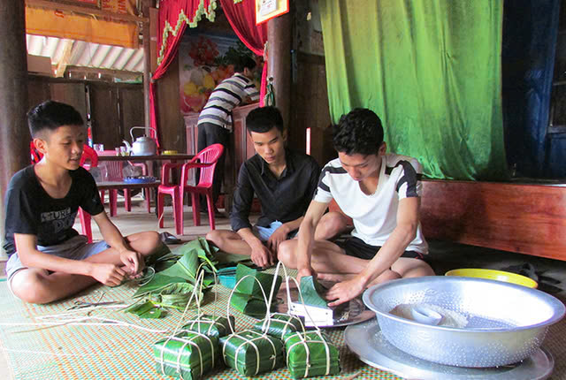 Người dân Minh Hóa gói bánh chưng mừng Tết Độc lập