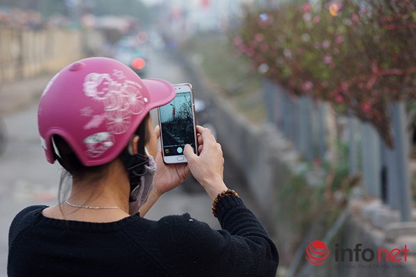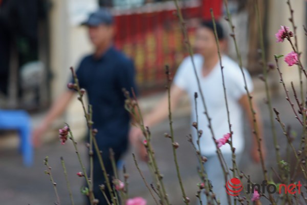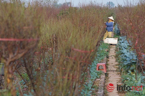 | "Tôi bắt đầu bán đào từ đầu tháng vừa rồi, ngày nào cũng có khách tới mua đào về cắm, còn lại chủ yếu là để bán buôn" - cô Cau, một người trồng đào tại Nhật Tân cho biết. |