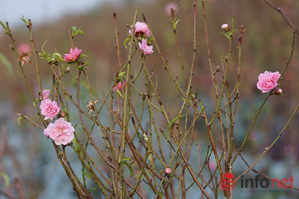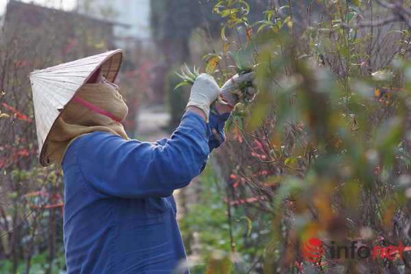 | Theo ghi nhận của phóng viên, do thời tiết năm nay nắng nóng lên đào sau khi tuốt lá sẽ nở rất nhanh. |