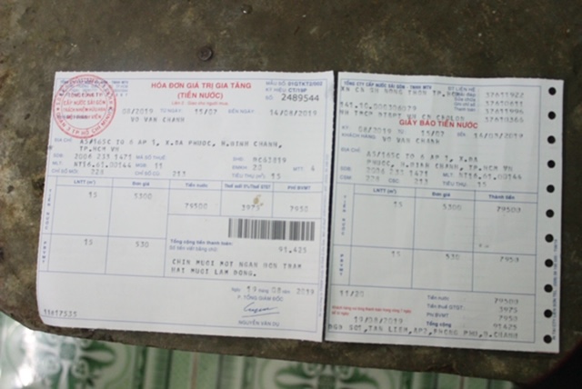 | Hóa đơn tiền nước của gia đình ông Võ Văn Chánh |