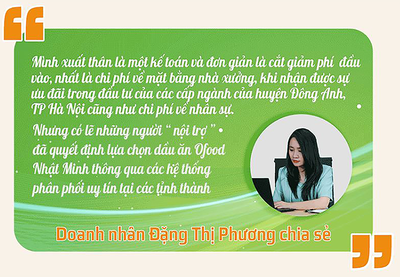 Nữ doanh nhân Đặng Thị Phương hay mọi người thường gọi một cách trìu mến là Người đẹp Ofood Nhật Minh, trải lòng: “ Đơn giản mình là phụ nữ và mỗi lần vào bếp lại tiếp xúc với dầu ăn, gia vị… và một câu hỏi bắt đầu “nhảy múa” trong đầu, đó là làm thế nào để mỗi “bếp Việt” được “ đủ đầy” các loại gia vị, dầu ăn nhưng phù hợp với túi tiền của nhiều gia đình và đây chính là khởi nguồn để Ofood Nhật Minh ra đời”.
