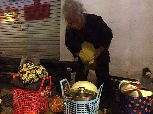 | Cụ bà Nguyễn Thị Ái Liên đang dọn đồ để được đưa về Trung tâm Bảo trợ xã hội I ăn Tết |