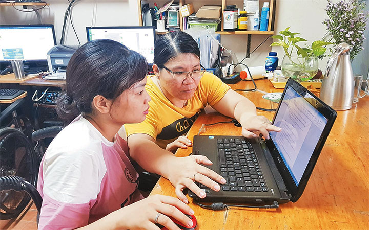 Hiện Công ty TNHH Hồng Ngọc Invoice có 6 nhân viên, tất cả đều là người khuyết tật. Tùy vào năng lực mỗi người mà Giám đốc Nguyễn Thị Mỹ Ngọc đào tạo và phân công công việc phù hợp. Mức lương trung bình mỗi tháng của người lao động trong công ty hiện nay khoảng 5-7 triệu đồng.