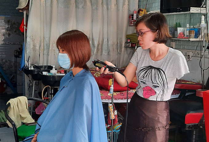 "Tôi không hài lòng với đầu tóc vừa cắt, thấy ngại với khách. Nhưng hơn hết, tôi biết ơn ông ấy vô cùng bởi nhờ ổng mà tôi dám thử. Những tưởng tượng lúc còn ở viện khác xa với việc bắt tay làm", chị Trâm trải lòng.