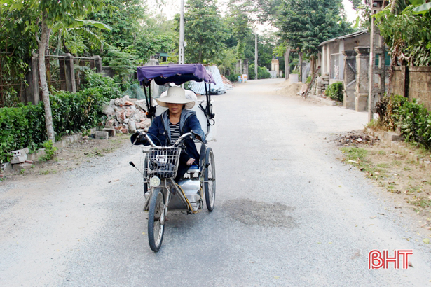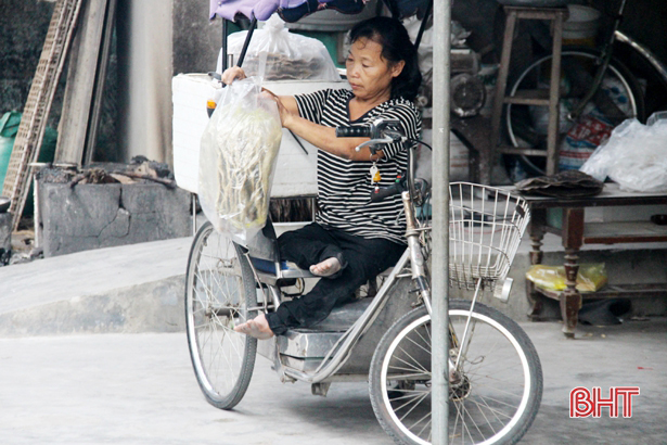 Trước đây, khi chưa có xe để đi lại, bánh bà làm ra chỉ bán cho những người trong thôn, xã lân cận vì họ tìm đến tận nhà lấy hàng. 3 năm nay, nhờ chiếc xe lăn được “mạnh thường quân” giúp đỡ, có phương tiện đi lại, thị trường “bánh đa bà Hoa” được mở rộng ra các nơi xa như Xuân An, Xuân Giang…