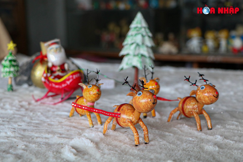 Mô hình ông già Noel, đàn tuần lộc đang trong quá trình hoàn thiện thêm của ông Tâm.