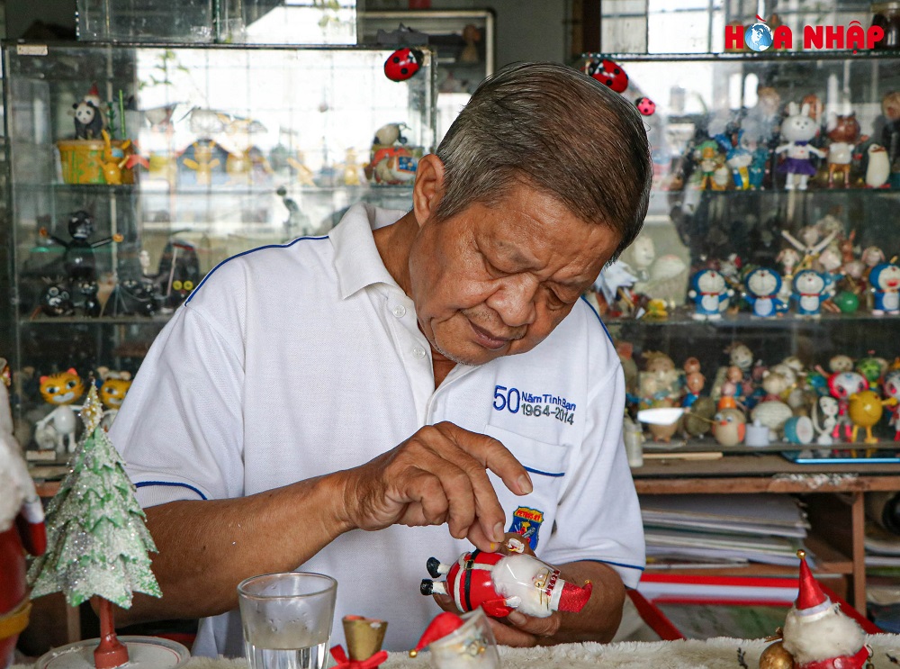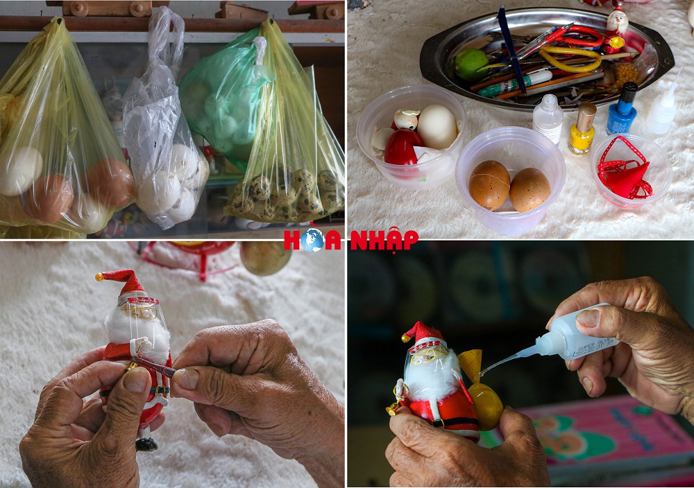 “Năm 2001, lúc đó tôi dạy tiếng Anh cho một học sinh lớp 8 tại nhà, bài học có liên quan đến nhân vật ông già Noel. Vì muốn học trò mình thích thú và nâng cao hiệu quả học hơn, tôi mới nghiên cứu làm mô hình ông già Noel từ vỏ quả trứng. Mặc dù mô hình ông già Noel năm đó chưa có hoàn thiện và đẹp như các sản phẩm hiện tại nhưng lại là khởi nguồn cho niềm đam mê kéo dài suốt 20 năm qua của tôi”- ông Tâm chia sẻ.