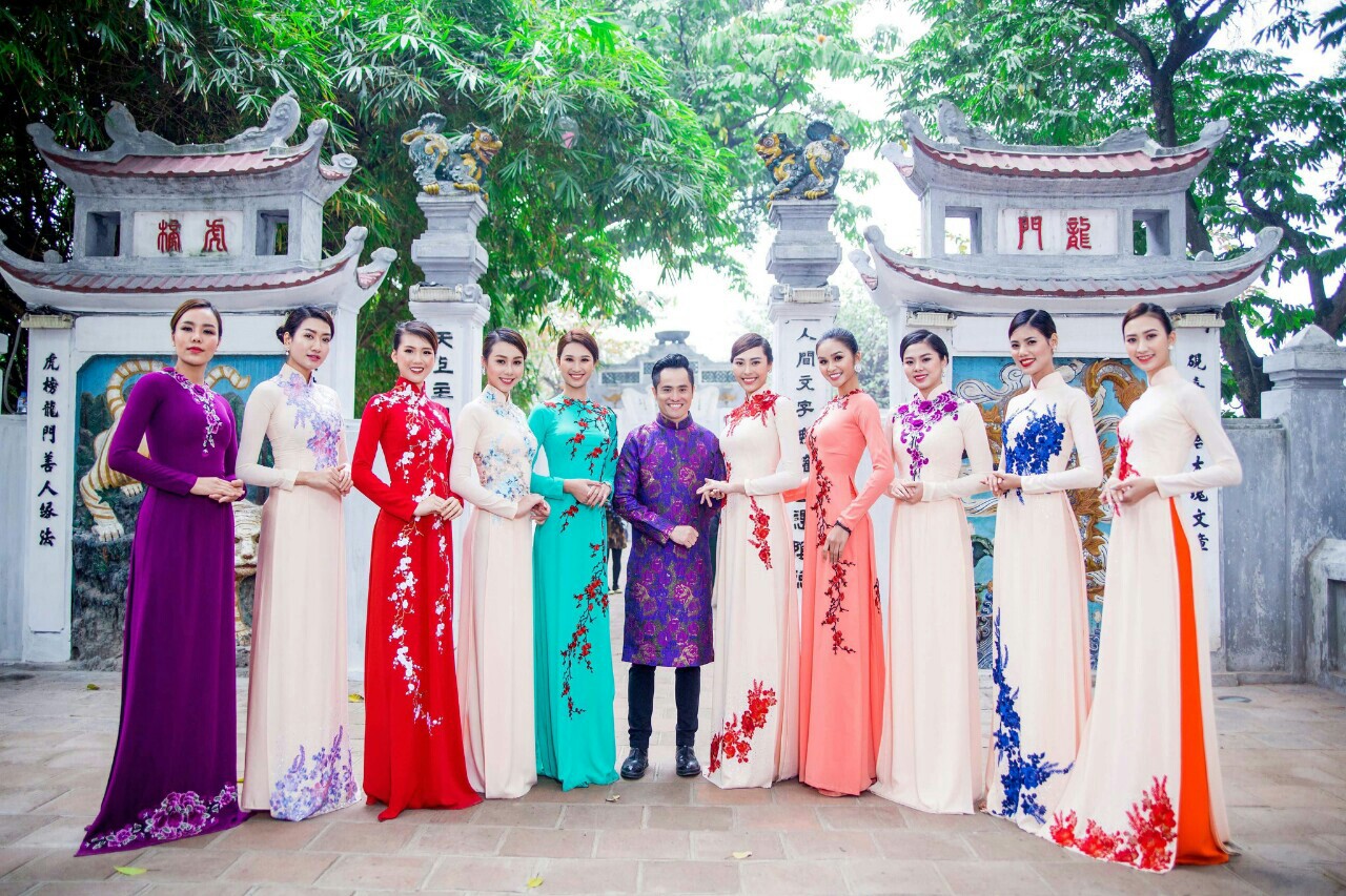 NTK Nhật Dũng chụp ảnh cùng những người mẫu trong trang phục áo dài truyền thống.