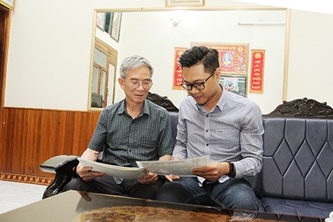 | Ông Bùi Minh Thuyên chia sẻ với phóng viên về hành trình đi tìm đồng đội. |