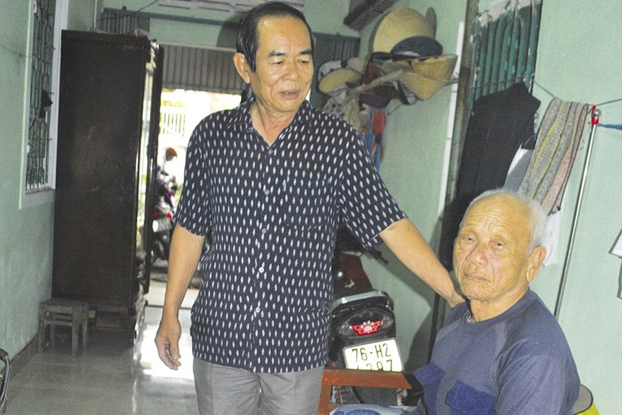 Cụ Nguyễn Bằng (86 tuổi, quê ở xã Nghĩa Thương, huyện Tư Nghĩa) bị cụt mất một chân, đi lại bằng xe lăn để bán vé số. Cụ sẽ phải bỏ thêm một khoảng tiền không nhỏ cho chi phí thuê phòng trọ nếu ông Lên không cưu mang. “Một, hai tháng tôi mới về nhà một lần. Tài sản chỉ có mấy bộ quần áo, tôi cũng mang luôn ra nhà cháu Lên để cất. Nói chung, không còn là tá túc, mà là tôi gần như ở hẳn nhà này”, cụ Bằng tâm sự.