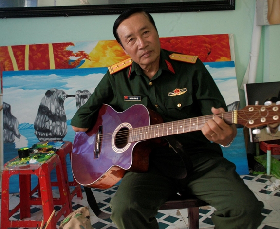 | Không chỉ vẽ tranh, thương binh 3/4 Nguyễn Đình Lực còn chơi đàn và giành được nhiều giải thưởng cao quý. |