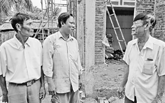 | Ông Út (bên phải) và các thành viên đến thăm một gia đình chính sách vừa được hỗ trợ xây nhà tình nghĩa. |