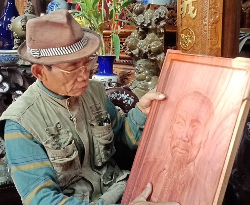 Bên cạnh đó, nghệ nhân Phí Đình Tuấn còn tỉ mỉ tạc lại bức ảnh chân dung Chủ tịch Hồ Chí Minh bằng chất liệu gỗ hương đỏ và trang trọng đặt chính giữa không gian bên trong tác phẩm của mình. Như lời bác tâm sự: "Mình từng là người lính, được trải qua quá trình rèn luyện và trưởng thành trong chiến đấu, trong những ngày tháng gian khổ ác liệt. Thế nên hình ảnh mình luôn nghĩ tới khi thực hiện tác phẩm đó chính là Bác Hồ!"