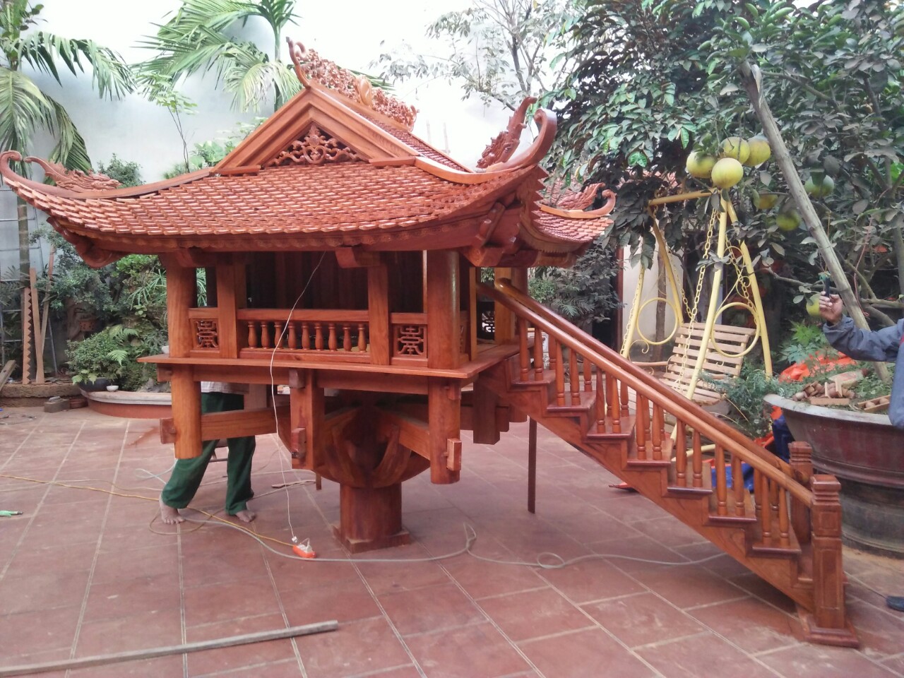Cho tới nay, tác phẩm Chùa Một Cột thu nhỏ đang bước vào những công đoạn hoàn thiện cuối cùng thì trước đó nghệ nhân Phí Đình Tuấn đã phải cùng với những người thợ lành nghề nhất của mảnh đất Chàng Sơn thực hiện trong vòng 2 tháng không kể ngày đêm. Một loại gỗ quý có tên là Cam Xe, với màu sắc trang nhã, chịu được thời tiết khắc nghiệt vùng nhiệt đới được chọn lựa là chất liệu để dựng nên tác phẩm. Và để có được những khối gỗ quý này, nghệ nhân Phí Đình Tuấn phải lặn lội tìm mua tận ở đất bạn Lào.
