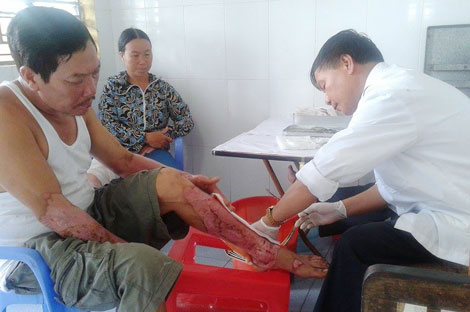 Để việc điều trị có hiệu quả cao, lương y Đào Viết Thoàn chủ yếu đắp thuốc mỡ, nuôi da và cả kết hợp dùng thuốc kháng sinh và tiếp nước đối với những bệnh nhân bị nhiễm trùng nặng, mất nước. Việc chữa Tây y kết hợp Đông y, anh Thoàn có cả sự giúp đỡ của Trung tâm Y tế huyện Quỳnh Phụ.