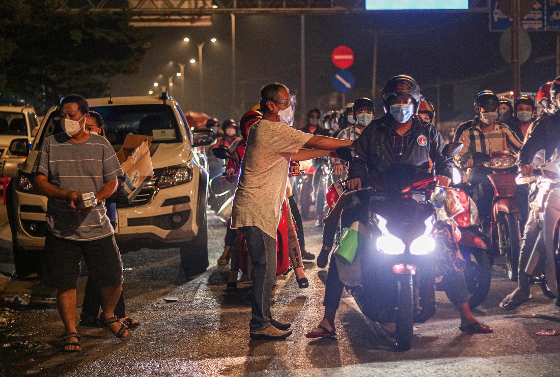 Người dân rời TP.HCM về các tỉnh miền Tây trên tuyến quốc lộ 1A (địa phận huyện Bình Chánh giáp ranh tỉnh Long An) trong đêm 3/10.