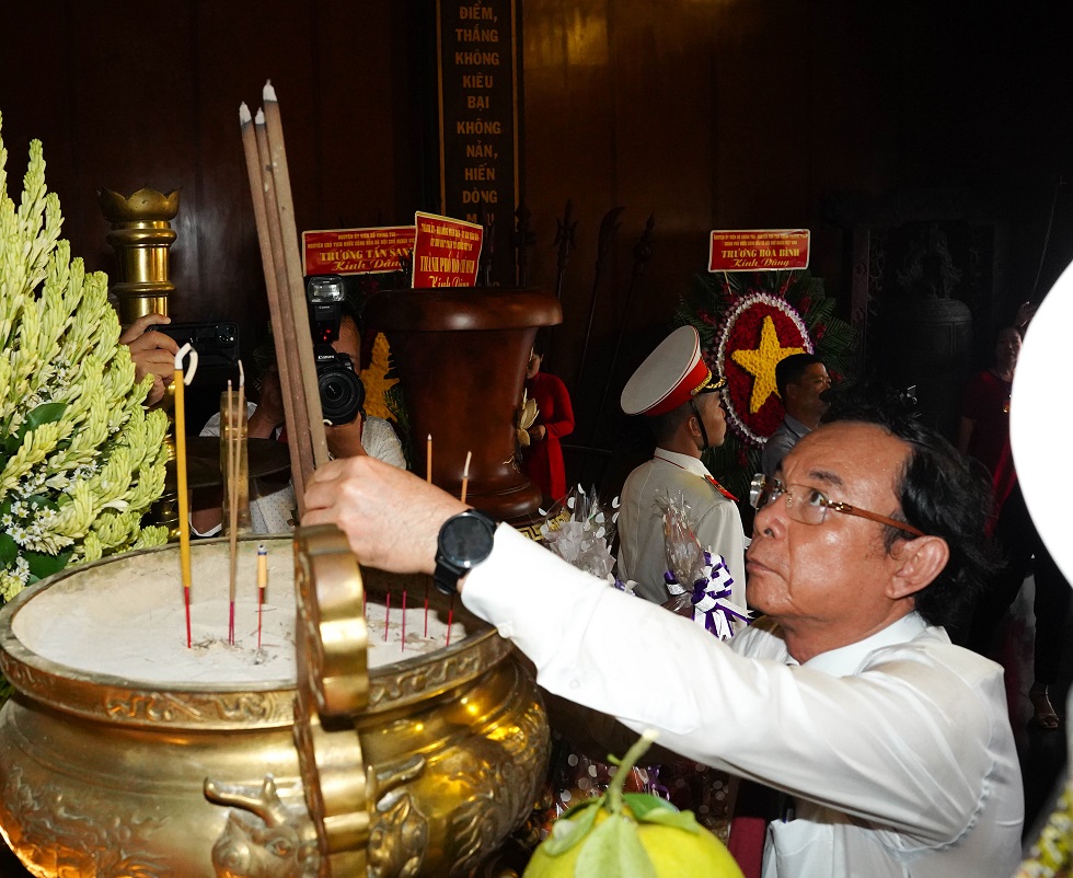 Nguyên Chủ tịch nước Nguyễn Xuân Phúc cùng đoàn đại biểu TP Hồ Chí Minh, TP Cần Thơ... tưởng niệm các anh hùng liệt sĩ tại tại Khu di tích Ngã Ba Giồng (huyện c Môn, TP Hồ Chí Minh).