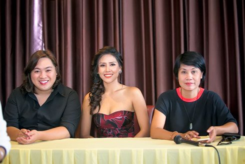 | Tham dự buổi gặp mặt báo chí chiều ngày 4/10 có bà Thúy Nga, Nguyễn Thị Loan và NTK Audrey Hiếu Nguyễn (từ phải sang) |