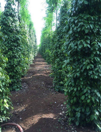 Hàng cây hồ tiêu xanh mướt đem lại thu nhập cao cho người dân.