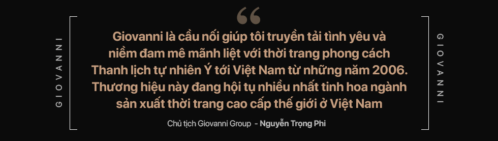 “Tôi có thể khẳng định rằng giá trị cốt lõi của Giovanni chính là sản phẩm - sản phẩm được sang tạo ra gần với “chất” Ý nhất. Sử dụng chất liệu, công nghệ, thiết kế phong cách Ý. Ở Đông Nam Á chỉ có Giovanni hội tụ tất cả các yếu tố của một thương hiệu cao cấp” - Chủ tịch Giovanni Group Nguyễn Trọng Phi