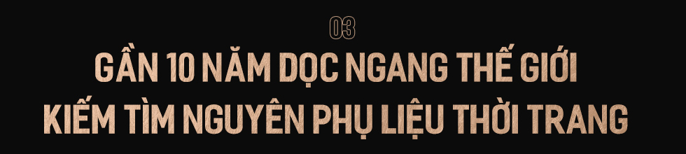 Công cuộc tìm kiếm những nhà sản xuất vải, da, gia công… tính đến thời điểm này phải mất tới 8 năm trời mới hoàn thiện được các nhà sản xuất mà mình ưng ý. Tôi đã phải đi vào những thương hiệu xa xỉ để xem họ sử dụng vải, da… của hãng nào. Sau đó tôi tìm kiếm các công ty môi giới ở Ý để người ta cung cấp thông tin và chỉ cho rằng da của Louis Vuitton, Gucci… là ai làm? Quần của Prada là nhà nào sản xuất?…