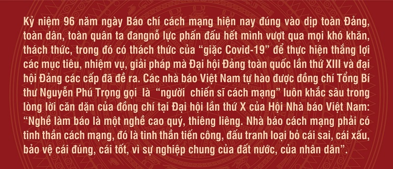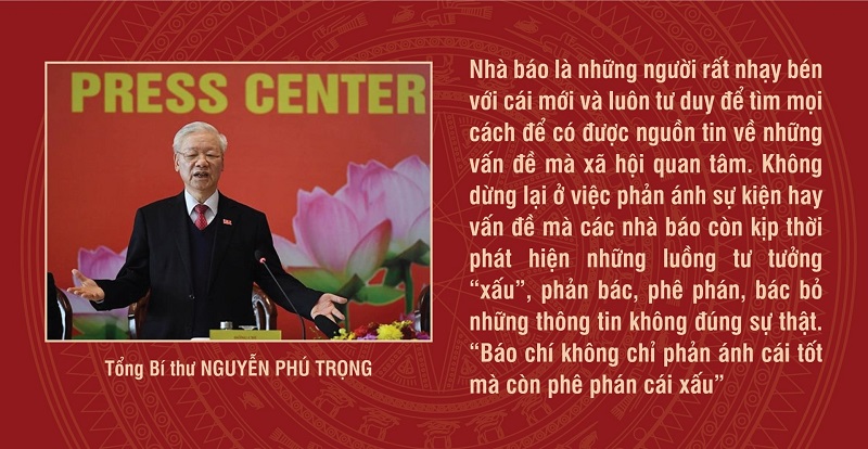 Tin tưởng vào sự trưởng thành của báo chí nước nhà, Tổng Bí thư Nguyễn Phú Trọng bày tỏ mong muốn, sau Đại hội, báo chí sẽ tiếp tục truyền cảm hứng cho các tầng lớp nhân dân để khơi dậy khát vọng phát triển đất nước của mỗi người dân đất Việt.