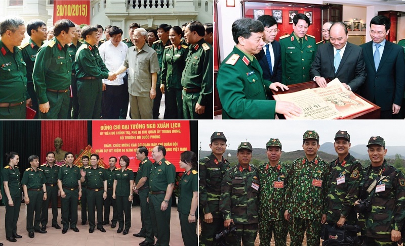 Năm ngoái khi chuẩn bị kỷ niệm 70 năm ngày ra số báo đầu tiên, Ban biên tập và các cán bộ chủ chốt của Báo rất xúc động được đồng chí Nguyễn Phú Trọng, Tổng bí thư, Chủ tịch nước tiếp tại phòng làm việc. Với tư cách của một người làm báo, đồng chí đã căn dặn chúng tôi nhiều điều và nhắc nhở chúng tôi phải đoàn kết hơn, đổi mới mạnh mẽ hơn, vì lợi ích chung của quốc gia và quân đội.