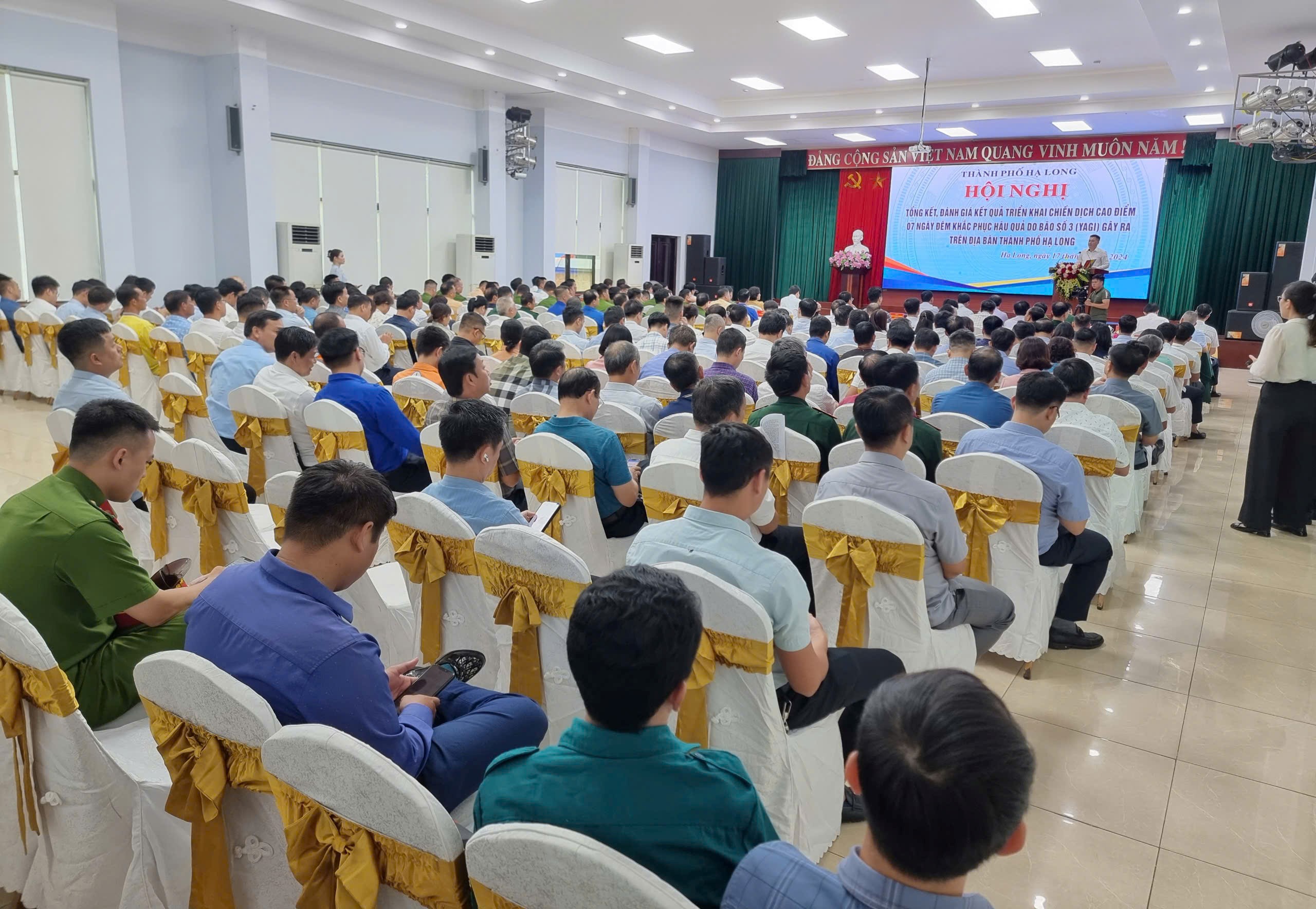 Hạ Long năng động mở chiến dịch cao điểm 7 ngày đêm thần tốc khắc phục thiệt hại bão số 3 (Yagi) đã vận động toàn dân, toàn diện, các cơ quan đoàn thể, doanh nghiệp, lực lượng vũ trang trên địa bàn chung tay xuống đường thu dọn đưa phế thải, cây cối, rác rưởi ra ngoài đô thị, khu dân cư.