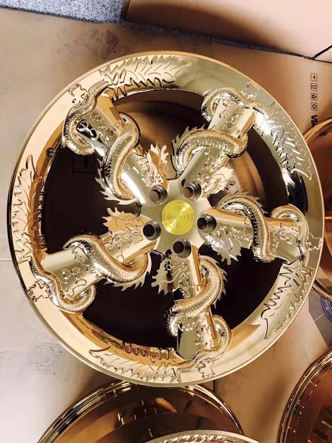 Có mặt tại Việt Nam từ tháng 8, khá bất ngờ khi la zăng hình rồng vừa được bán ra tại Mỹ với giá lên tới 7.800 USD, cao hơn khá nhiều so với giá bán “tin đồn” tại Việt Nam. Đây là tác phẩm của công ty Rimsbook Corporation Limited sản xuất có kích thước 22 inch với 5 nan lớn với hình rồng cuốn quanh. Các chi tiết được dập khá tỉ mỉ nhưng có vẻ như chưa nổi và chi tiết bằng bộ la zăng về Việt nam trước đó.