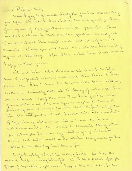 | Trang đầu tiên bức thư viết tay của Giáo sư Langlands cho giáo sư Weil năm 1967. (Nguồn: Institute for Advanced Study) |